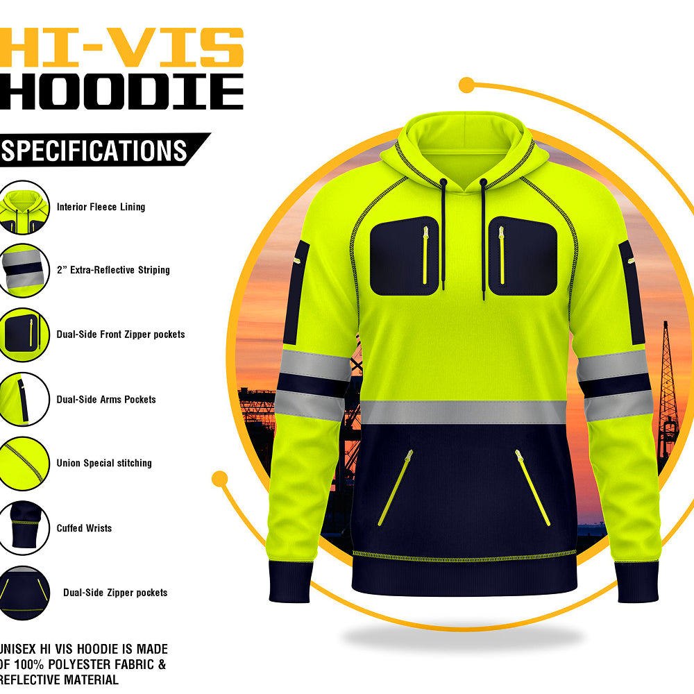 The Toro activa Essential Hi-Vis Fleece Hoodie 02 keeps you warm, visible, and comfortable in any work setting. Made from soft yet durable polyester fleece, it features a front zipper for easy wear, multiple secure pockets, and an adjustable hood for added protection.