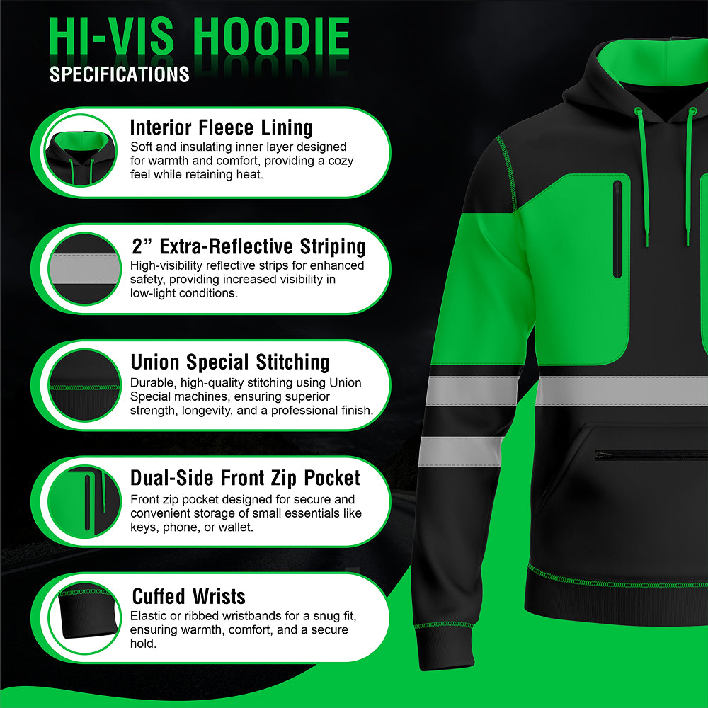 The Toro Activa Essential Hi-Vis Pullover Hoodie 2004 keeps you warm, visible, and comfortable in any work setting. Made from soft yet durable polyester fleece, it features a front zipper for easy wear, multiple secure pockets, and an adjustable hood for added protection.