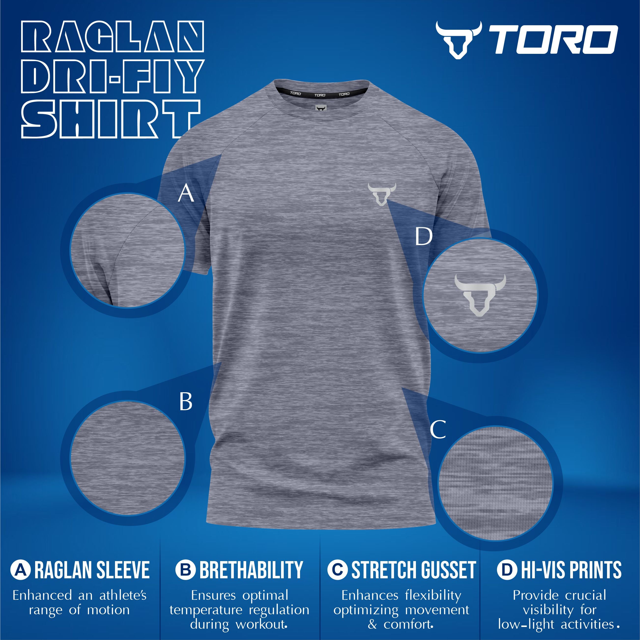 Toro Activa Men Short Sleeve T-Shirts Workout Melange grey